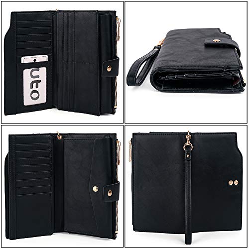 UTO - Mujer Cartera de Bloqueo de RFID PU Cuero Monedero Largo 21 Ranuras para Tarjetas Monedero Gran Capacidad Bolsillo para Móvil Negro 1
