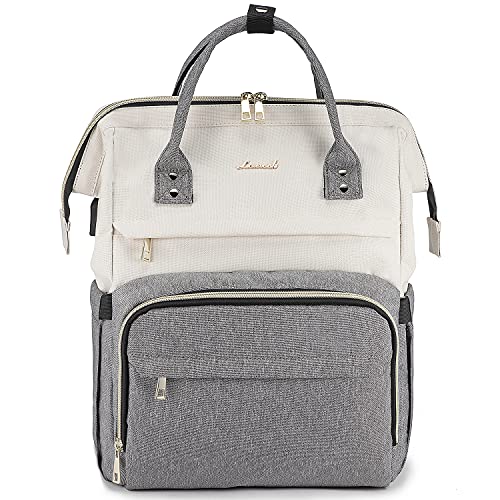 LOVEVOOK Mochila Portátil Mujer, Elegante Mochila Escuela con Compartimento para Portátil de 15,6 Pulgadas, Mochila para Universidad Viajes Trabajo Negocios Profesora, Beige Gris
