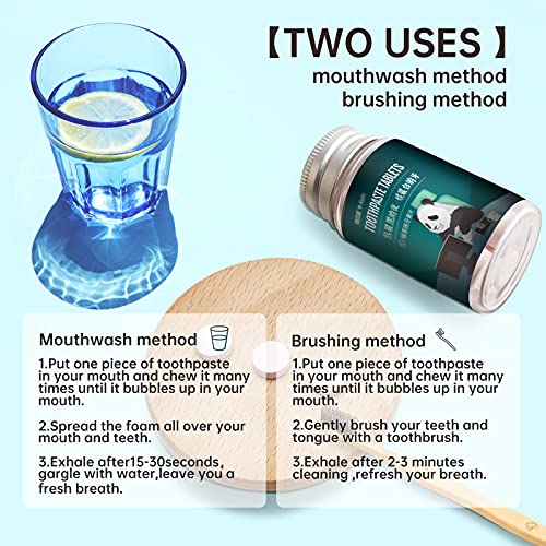 - ★【Uso】: cuando es necesario limpiar la boca, tomar 1-2 tabletas para masticar hasta que la espuma esté llena de boca. Gárgaras o usar un cepillo de dientes para limpiar los dientes. Escupe la espuma después de limpiar completamente la boca. Enjuague con agua.