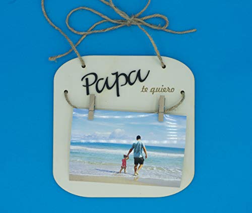 Marco de foto con Pinzas en Madera con el"Papá" en acrílico y el"te quiero" grabado con Láser. Marco de madera para el día del Padre, un regalo y recuerdo especial para toda la vida