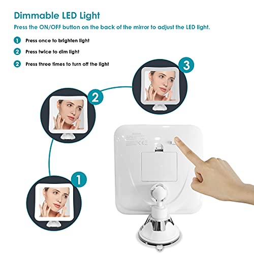 FASCINATE Espejo Maquillaje con Luz LED Aumento 10X Afeitado Aumento con Luz, Espejo Aumento LED Cosmético con Ampliación 10X y Poderoso Ventosa, Rotación 360°