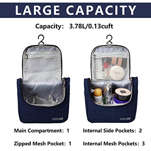 Neceser Hombres Mujeres, Kasgo Impermeable Bolsa de Aseo Bolso de Tocador Dopp Kit Estuche de Viaje para Maquillaje Bolsa de Cosmeticos Diario Bolsa de Lavado con Gancho Robusto Azul