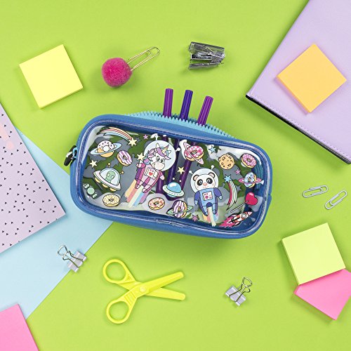 Estuche para lápices de FRINGOO, de PVC, infantil, transparente, grande, ideal para el colegio, para niños y niñas, color Space Fantasy Large