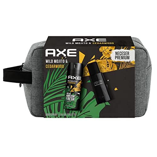 AXE Neceser Hombre Set de Baño con Bolsa de Aseo Wild Mojito & Cedarwood Desodorante BodySpray 150 ml + Eau de Toilette 100 ml
