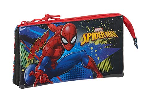 - Safta SpiderMan Oficial portatodo escolar con triple cremallera. 2 años de garantía.