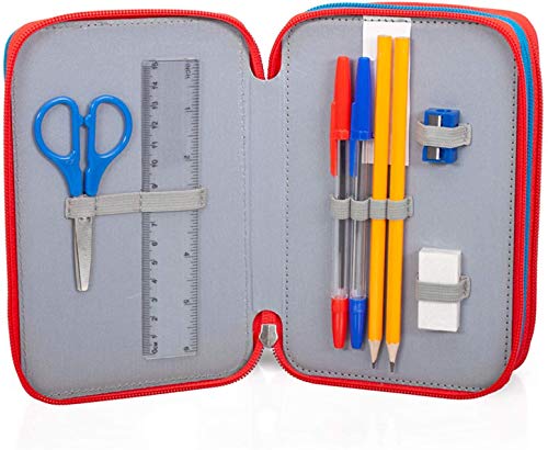 Spiderman - Estuche escolar original con 3 cremalleras con 44 piezas (rojo/azul).