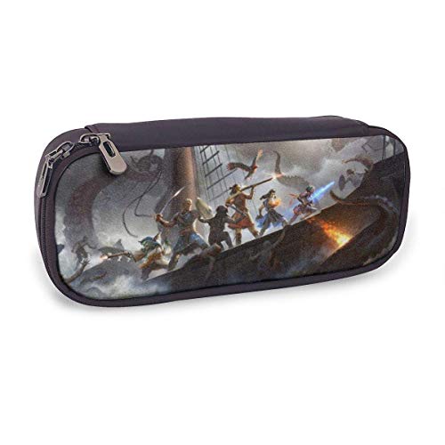 Lsjuee Pillars Eternity Deadfire Estuche para lápices Estuche para lápices de cuero PU Estuches para bolígrafos Estuche para papelería Maquillaje cosmético Bolsa con doble cremallera para igh/Middl