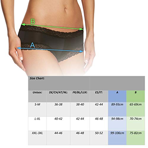 - Comodidad: gracias al cómodo acabado sin costuras, las bragas ofrecen una sensación agradable y cómoda. Si estás entre dos tallas, te recomendamos elegir la variante más grande.