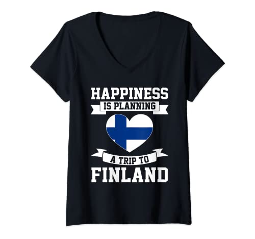 Mujer La felicidad está planeando viaje Finlandia raíces finlandesas Camiseta Cuello V