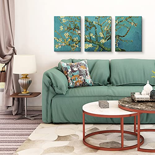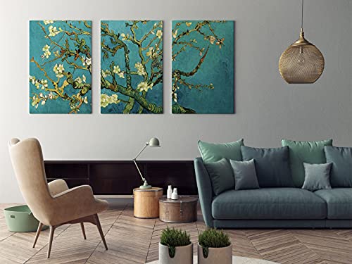Cuadros Almendro en Flor de Vincent van Gogh - 3 Piezas de 40 x 60 cm (120 x 60 cm) - Decoración Moderna para Salón y Dormitorio, Lienzo de Poliéster y Bastidor de Madera, Multicolor, LEN-140