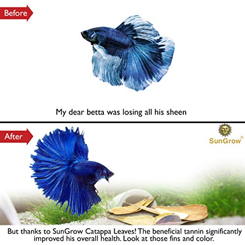 - ✔ Dale un hogar sin estrés a tu BETTA --- Cuando los peces tienen un ambiente rico en tanino, tienden a crecer más fuerte y más fuerte. Al reducir el pH, proporcionan condiciones ideales del agua. Estas hojas se consideran que tienen propiedades de supresión de hinchazón y son una rica fuente de antioxidantes que disminuyen el riesgo de enfermedades.