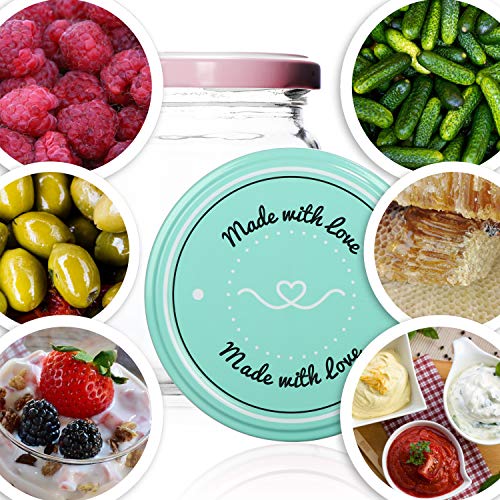 - DISEÑO BONITO: ¡Hermosos tarros para conservas con tapa en 2 colores diferentes y con diseño "Made with love"!