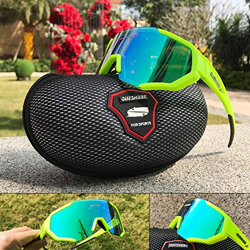 Queshark Gafas De Sol Polarizadas para Ciclismo con 3 Lentes Intercambiables UV400 MTB Bicicleta Montaña (Verde)