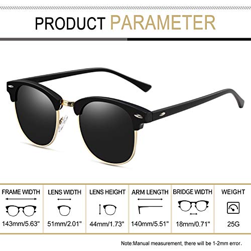 Joopin Gafas de Sol Unisex Polarizadas Protección UV400 Semi-Rimless Marco Estilo Vintage Gafas de Sol Hombres Mujeres para Conducción Viajes Playa Deportes al Aire Libre Brillante Marco Negro