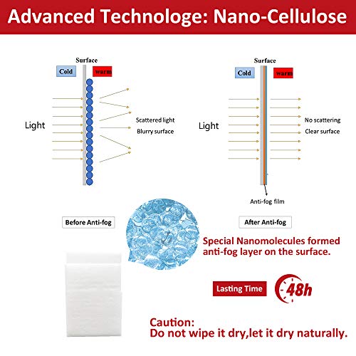 - 【Fortgeschrittene Nano-Technologie, bis zu 48 Stunden】 Cooskin-Anti-Fog-Wipe-Wischwinkel nutzt ein fortschrittliches Nano-Technologie-Material namens Nano-Cellulose. Es wird aus Naturpflanzen extrahiert, bildet einen effizienten Anti-Nebelfilm auf der Oberfläche Ihrer Brille. Es hilft Ihnen sicherlich besser, die Kondensation von Feuchtigkeit zu verhindern. Unter normalen Umständen kann der Anti-Nebel-Effekt bis zu 48 Stunden erreichen, sodass Sie den ganzen Tag eine klare Sicht haben können.