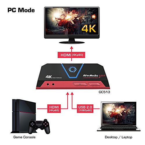 AVerMedia Live Gamer Portable 2 Plus, 4K Pass-Through, Capturadora de juegos 1080p60 USB , Baja latencia, Grabación, Stream, Plug and Play, para Xbox, Playstation, Switch (GC513)