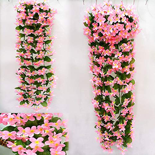 2 Piezas Flores Colgantes LMYTech Planta Colgante/Flor Colgante Artificial/Planta Artificial Colgante/Plantas Colgantes Naturales/700 mm/Decoración Interior y Exterior-Rosa