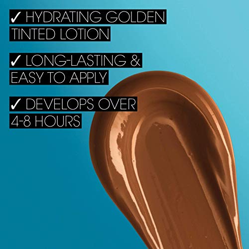 - Esta loción fácil de aplicar ilumina instantáneamente la piel con un toque de bronceado visible desde la primera aplicación. El tono dorado oculta las imperfecciones, y el bronceado se desarrolla progresivamente con las aplicaciones diarias