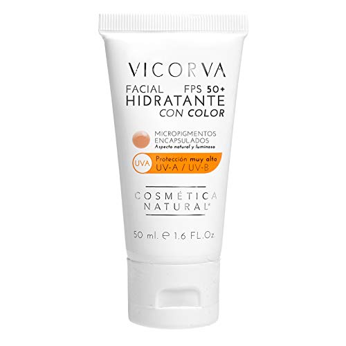 VICORVA HIDRATANTE FACIAL FPS50+ CON COLOR | Crema solar diaria con protección UVA y UVB muy alta | Micropigmentos Encapsulados | Vitamina E y Polímero Hidrolizado de Proteína de Trigo | 50ml