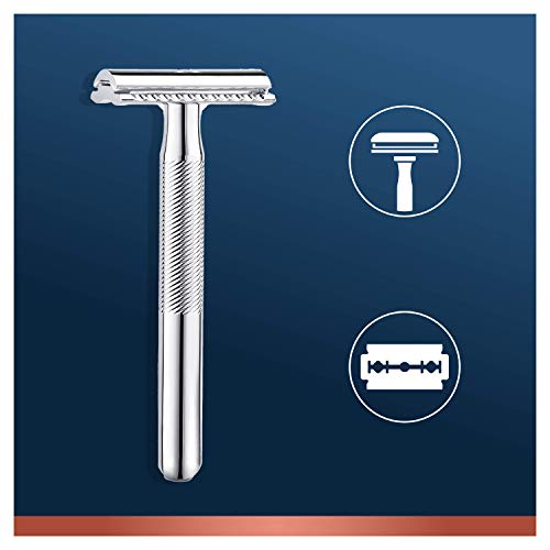 King C Gillette - Máquina De Afeitar De Doble Filo Para Hombre + 6 Recambios Con Las Mejores Hojas De Doble Filo De Gillette Con Revestimiento De Platino