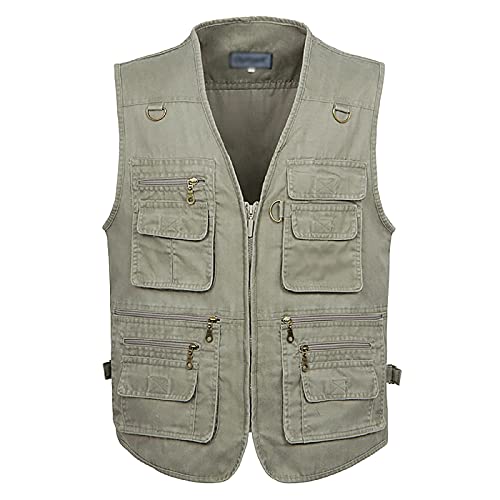 G&F Hombres Multibolsillos Chaleco Pesca Multifunción Chaleco por Fotografía Reportero Chaleco (Color : Khaki, Size : 10XL)