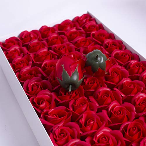 XuanMax 50pcs Rosas Pétalo Flores de Jabón en Caja Bouquet de Flores Artificiales Jabón de Flores de Perfumada Baño Cuerpo Regalo para Boda Decoración San Valentín Día de la Madre - Rojo