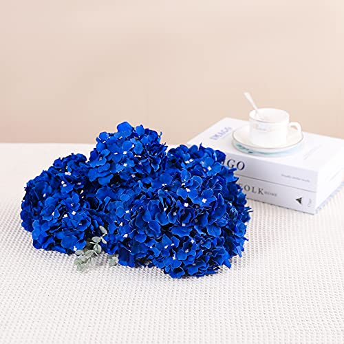 Tifuly 12 Pcs Hortensias Artificiales, Hortensias de Seda Cabezas de Flores con Tallos Flores Falsas para Ramos de Novia, Decoración de Fiesta en el hogar, Arreglos, Centros de Mesa (Azul Real)
