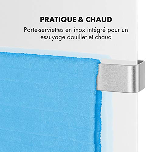 - BAÑO CALIENTE: Ideal para estancias húmedas gracias al grado de protección IP24, el radiador de pared eléctrico bajo consumo Hot Spot Crystal IR de Klarstein calienta al alcance de la mano con soporte toallero de acero inoxidable integrado.