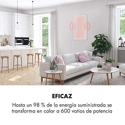 Klarstein Wonderwall Air - Calefactor bajo consumo panel, Panel radiante de cristal de carbono, Calefacción eléctrica bajo consumo sin ruidos, Detección ventana abierta, 101 x 60 cm, 600 W, Blanco