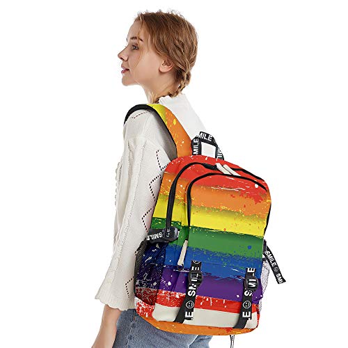 - Tamaño: 44 * 30 * 18 cm. Mochila de moda a juego, mochila de orgullo gay LGBT. Gran capacidad, puede colocar el teléfono celular, billetera, cuadernos, revistas, archivos A4, iPad mini, botella de agua y un paraguas en diferentes bolsillos