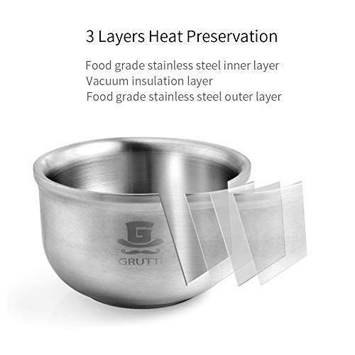 GRUTTI Cuenco de espuma de afeitar, 11,5 cm Taza de jabón de afeitar duradera para hombres Taza de jabón brillante de tres capas 304 de acero inoxidable resistente al calor para preservar el calor