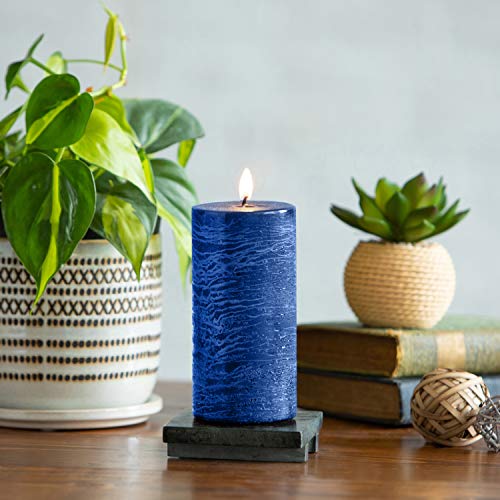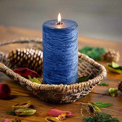 Velas de pilar de 3 x 6 sin perfume – Juego de 3 velas de cera vertidas a mano | Sin humo, decoración de combustión limpia para el hogar, bodas, iglesia, eventos, azul oscuro