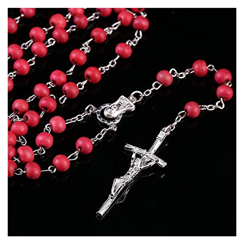 Cuentas clásicas de Madera 6mm Rose Perfume Rosario Collar, Perfume Perlas de Madera Collar Colgante.Accesorios religiosos de joyería (Color : X00604)