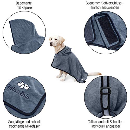 Bella & Balu Albornoz para perro M de Microfibra Absorbente – Toalla para perros para secado tras el baño o el paseo bajo la lluvia (6 TALLAS - 3 COLORES)