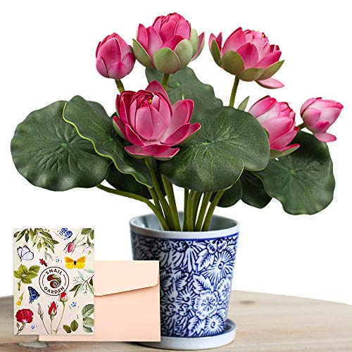 - 【Paquete con 2 manojos de flores de nenúfar y 1 tarjeta de felicitación】-Cada ramo de flores de loto mide aproximadamente 31,5 cm, la cabeza de loto en flor: aproximadamente 7,5 cm de diámetro, cada ramo incluye 4 hojas de loto, 2 flores de loto y 1 capullo. Con la tarjeta de felicitación, incluso puede usarla como un regalo significativo para sus amigos y familiares, especial y duradero