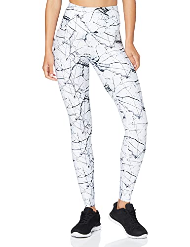 Amazon Brand -AURIQUE Leggings deportivos de talle alto para mujer, Blanco (Marble White Print), 36, Label:XS