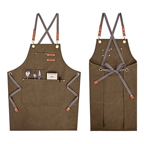 YUENA CARE Delantal Trabajo, Delantal de Cocina Ajustable Mandil de Lona Duradero para Cocinero Camarero Servidores Baristas, con Bolsillos, para Mujer y Hombre #1