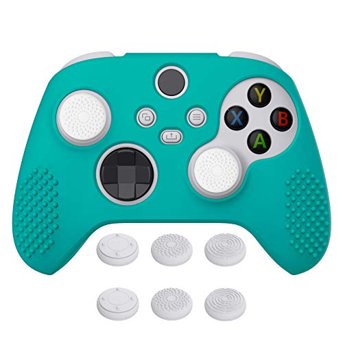 eXtremeRate PlayVital Funda de Silicona para Xbox Series X S Protector Tacto Suave Carcasa Antideslizante con 6 Tapas de Joysitcks Funda de Goma para Mando Xbox Series S X(3D Tachonado-Aqua Verde)
