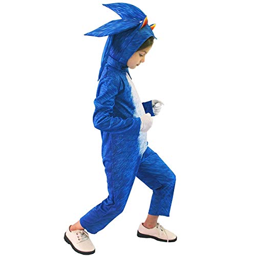 LUCKY Niñas Niños DisfrazSonic Hedgehog Jumpsuit + Tocado + Guantes Traje de lujo (125-140cm / 7-8 años, Azul)