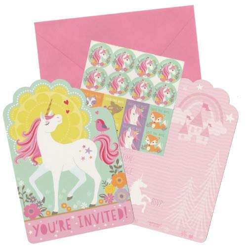 Amscan 491929 - Invitaciones de postal de unicornio mágico para fiesta de cumpleaños, 8 unidades