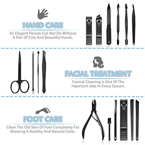 - ăConjunto 18 en 1ăIncluyendo herramientas de cuidado facial, set de manicura y set de pedicura. Se puede utilizar en la manicura, el pedicuring, la ceja que forma, el anti-acnĂ©, el etc exfoliating, que puede satisfacer las diversas necesidades de cuidado en su vida diaria.
