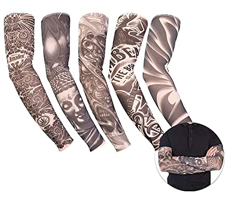 TK Group Timo Klingler 5 PIEZAS. Mangas de tatuaje universales hechas de nailon, engañosamente reales, como un tatuaje para los rockeros de carnaval, punkers, accesorios punk, disfraz, hombres