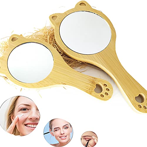 Canzoon Espejo Mano Madera 2Pcs Espejo Redondo De Mano Espejo Portátil Espejo De Madera Maquillaje Para Peluquería Con Mango De Madera Para El Cuidado Del Rostro