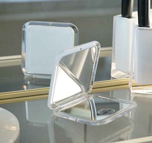 Fantasia - Espejo de Bolsillo Cuadrado (plástico, Doble Cara, Aumento Normal y 7X, 8,5 x 8,5 cm), Color Blanco