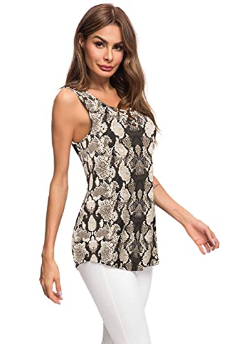 MOLERANI Blusa sin Mangas Informal Cruzada sin Mangas de Verano para Mujer Blusa básica con Cordones (2XL, Piel de Serpiente marrón)