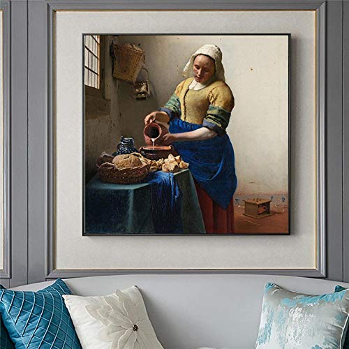 Johannes The Milkmaid Pinturas De Arte Famosas En La Pared Carteles E Impresiones ArtíSticos Edad De Oro Holandesa Cuadros De Obras De Arte Famosas Cuadros-60x80cm Sin Marco