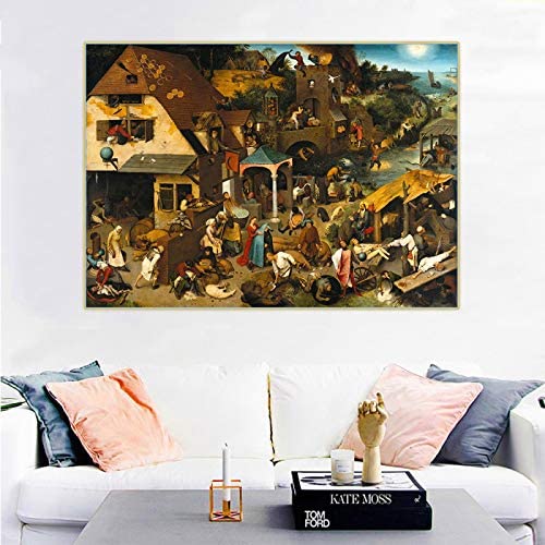 Pieter Bruegel Posters De Obras De Arte Impresiones "Los Proverbios Holandeses" Pinturas Famosas Arte De La Pared De La Lona De La Vendimia Para La Decoracion De La Salon Cuadros 60x80cm Sin Marco