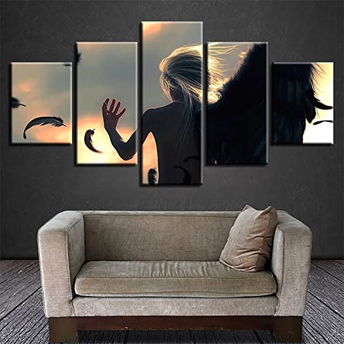 Lienzo de arte de pared para cuadros de dormitorio e impresiones para dormitorio 5 piezas lienzo de arte de pared pintura de ángeles póster de paisaje decoración moderna cuadros de sala de estar mar