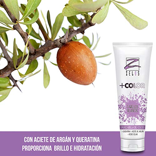 Mascarilla de Color para el Pelo - Matizante Cabellos Blancos, Gris, Silver, Rubio Decolorado - 200 ml - Queratina y Aceite de Argán - Nutrición y Brillo Uso Profesional - Zelos