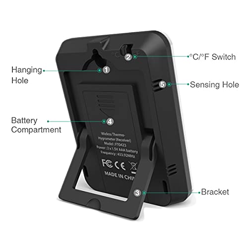 - ☁【 Fuerte Señal Inalámbrica 】- El termómetro interior está conectado con un transmisor inalámbrico. El transmisor tiene una fuerte penetración de la frecuencia de la señal inalámbrica (433MHz) y una larga distancia de transmisión (30 - 100m / 98 - 100m al aire libre). La señal puede recibirse rápida y rápidamente dentro del rango de transmission